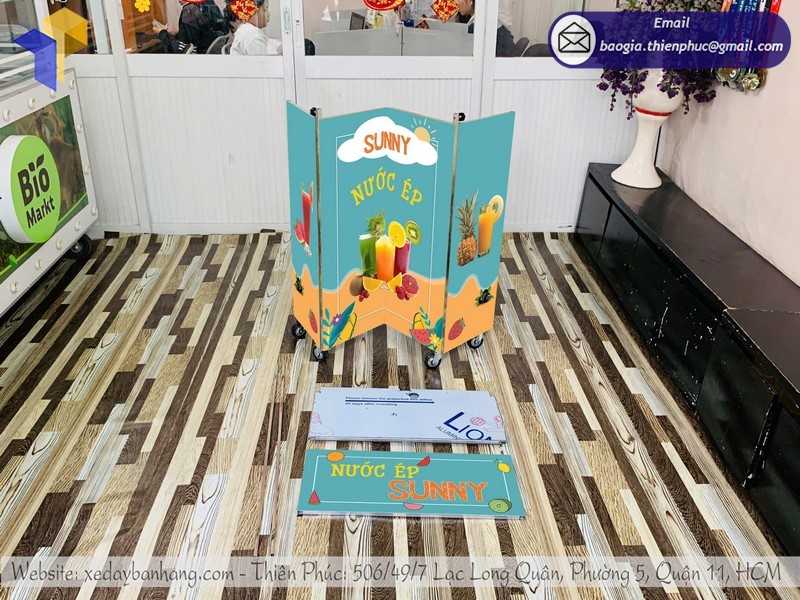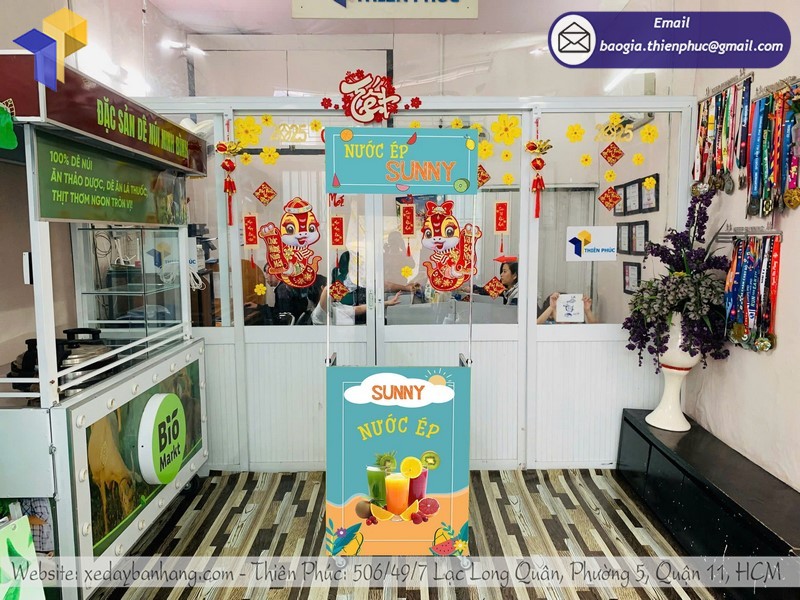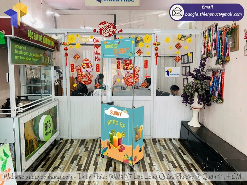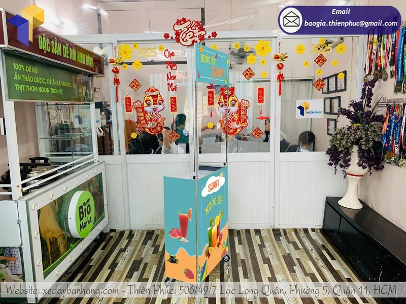 Thiên Phúc là nơi cung cấp các giải pháp thiết kế và thi công quảng cáo. Đồng thời, cũng là thương hiệu xe đẩy bán hàng được nhiều người tin dùng và sử dụng. Ngoài ra, con nhận gia công theo nhu cầu và mong muốn của khách hàng. Chúng tôi luôn đặt tiêu chí “sự hài lòng của quý khách là niềm tự hào của chúng tôi”. Tại Thiên Phúc có vô vàn mẫu mã đa dạng, giá cả phù hợp; chất lượng và uy tín trải dài khắp 64 tỉnh thành với hệ thống vận chuyển xuyên suốt 3 miền với thời gian nhanh nhất.