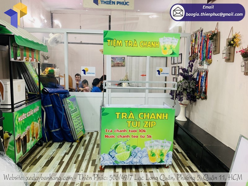 Bạn muốn kinh doanh mô hình bán trà chanh với nguồn vốn thấp, vậy thì tại sao bạn không thử khởi nghiệp cùng xe bán trà chanh gấp gọn. Hình thức kinh doanh này không cần nhiều vốn nhưng chắc chắn sẽ cho bạn nhiều trải nghiệm thú vị. Nhưng hiện nay có rất nhiều xưởng sản xuất xe lắp ráp bán hàng nước giá rẻ, bạn vẫn phân vân vìa chưa tìm được nơi nào uy tín vì có quá hiều nơi chất liệu và giá thành chênh lệch nhau. Qua bài viết này bạn sẽ không càn phải lo lắng về vấn đề này nữa vì Thiên Phúc là xưởng chuyên cung cấp xe lắp ráp bán giá rẻ nhất tại thị trường.