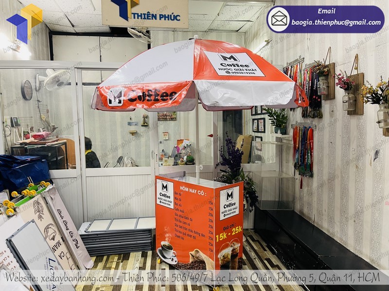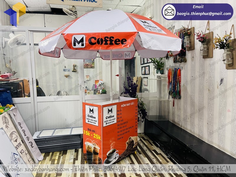 Khi mua sắm xe bán cafe tại Thiên Phúc sẽ thiết kế đề can theo yêu cầu của bạn để phát huy tối đa mọi ý tưởng bạn mong muốn. Từ đó, Thiên Phúc sẽ đảm bảo mang đến cho bạn chiếc xe bán cà phê gấp gọn độc đáo, thu hút và bắt mắt nhất.