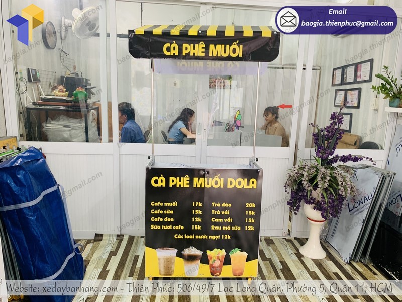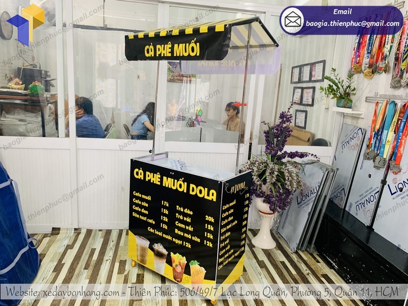 Với nhiều năm kinh nghiệm, chuyên nghiên cứu khảo sát trong lĩnh vực xe đẩy bán hàng. Chúng tôi xin giới thiệu cho bạn một địa chỉ sản xuất xe bán cafe di động uy tín đó là Công ty TNHH Thiên Phúc – thương hiệu sản xuất xe bán hàng rong hàng đầu hiện nay, trong đó có xe lắp ráp bán cafe