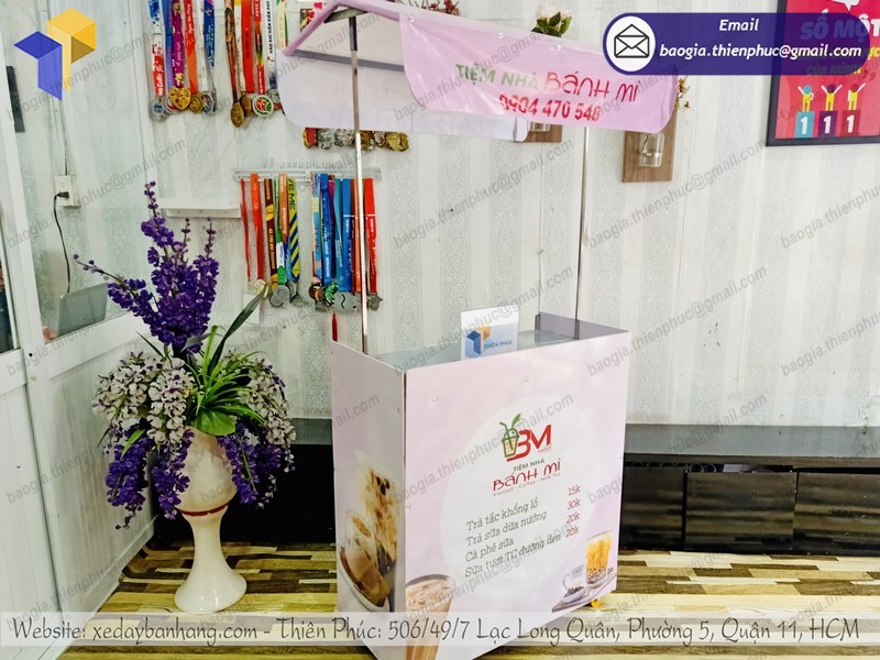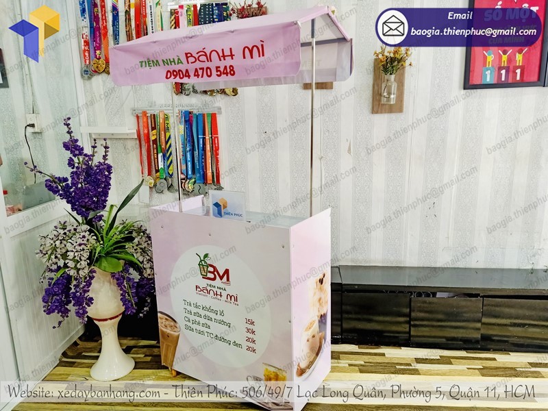 - Giá quầy bán bánh mì gấp gọn hấp dẫn hất trên thị trường. Nhờ vậy, khách hàng sẽ hoàn toàn yên tâm chính sách báo giá và ưu đãi của Thiên Phúc.