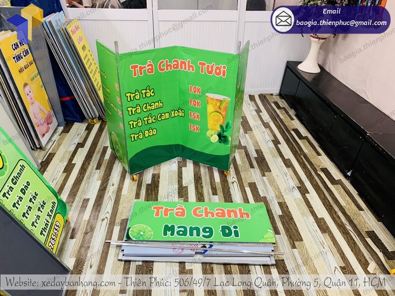 – Nhiều ưu đãi tuyệt vời khác. Để giúp cho “cửa hàng mini di động” của bạn trở nên thu hút, Thiên Phúc miễn phí trọn gói combo lên ý tưởng thiết kế và dán decal cho xe bán trà chanh vỉa hè