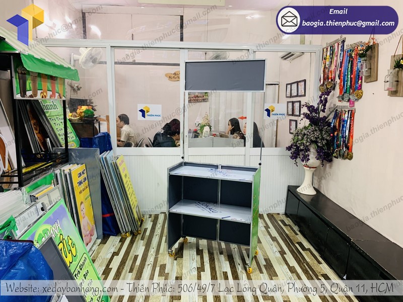 Mặt trên xe và vách ngăn bên trong khung sắt được ốp bằng tôn kẽm chống gỉ. Những chiếc xe bán trà chanh giá rẻ được thiết kế thêm hai vách ngăn rộng rãi dùng để đựng các vật dụng bán hàng. Bạn có thể dễ dàng đặt cốc dự trữ hoặc các vật dụng cần thiết khác bán hàng.