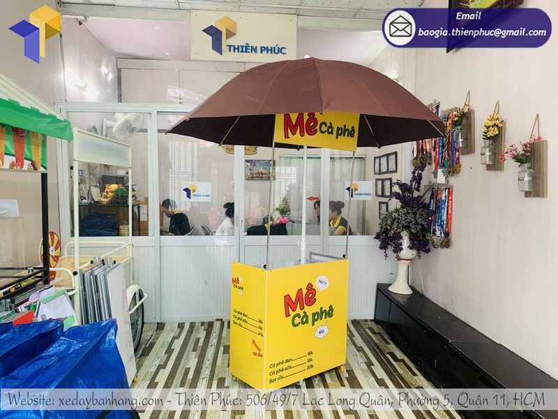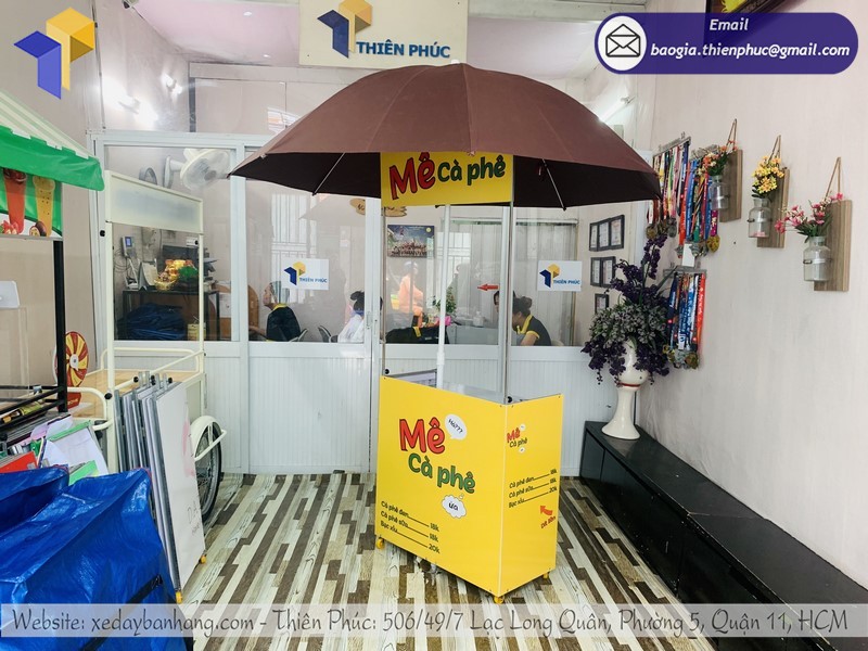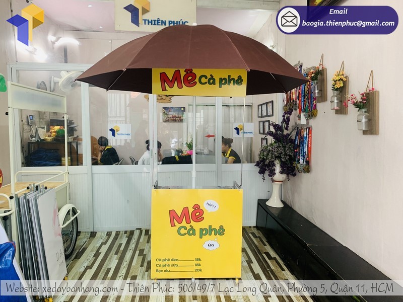 Một trong những địa chỉ bạn có thể hoàn toàn yên tâm khi mua sắm xe đẩy bán cafe đó chính là Thiên Phúc. Thiên Phúc cung cấp xe bán cafe, trà sữa,.. di động bằng chất liệu inox 304 cao cấp với đề can nổi bật, đẹp mắt để thu hút khách hàng ghé quầy.