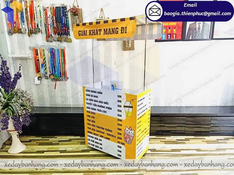 Để giúp bạn tiết kiệm luôn cả chi phí mua mô hình bán hàng nước giải khát, mình xin giới thiệu bạn xưởng chuyên đóng xe bán hàng lắp ráp với giá siêu rẻ mà chất lượng luôn được đảm bảo đó là xưởng Thiên Phúc-xưởng chuyên cung cấp booth lắp ráp bán nước giải khát giá rẻ.