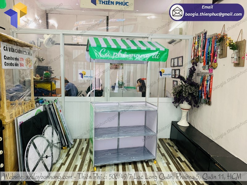 Thiên Phúc là nơi cung cấp các giải pháp thiết kế và thi công quảng cáo. Đồng thời, cũng là thương hiệu xe đẩy bán hàng được nhiều người tin dùng và sử dụng. Ngoài ra, con nhận gia công theo nhu cầu và mong muốn của khách hàng. Chúng tôi luôn đặt tiêu chí “sự hài lòng của quý khách là niềm tự hào của chúng tôi”. Tại Thiên Phúc có vô vàn mẫu mã đa dạng, giá cả phù hợp; chất lượng và uy tín trải dài khắp 64 tỉnh thành với hệ thống vận chuyển xuyên suốt 3 miền với thời gian nhanh nhất.