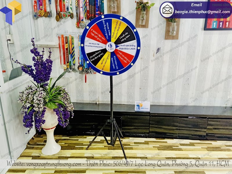 Màu sắc của vòng quay trúng thưởng khá đa dạng, trên mặt vòng quay được khách hàng dán nội dung theo yêu cầu, tùy thuộc vào nội dung của quý khách.