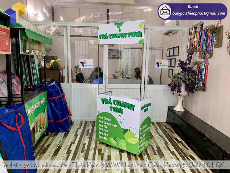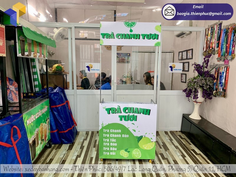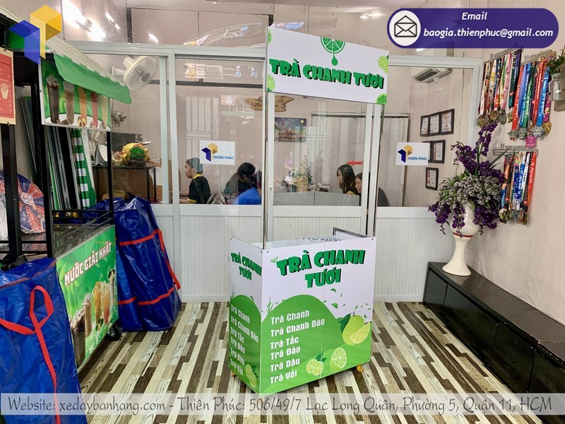 Công ty TNHH SX KD XNK Thiên Phúc với nhiều năm kinh nghiệm trong ngành sản xuất các dòng xe đẩy bán hàng uy tín nhất trong thị trường. Công ty hoạt động đã nhiều năm và được rất nhiều khách hàng tin tưởng và sử dụng lựa chọn khi mua xe bán trà chanh xếp gọn. Tại Thiên Phúc sẽ hỗ trợ cho bạn những mẫu thiết kế xe đẩy riêng theo ý của bạn. Đặc biệt, khi mua xe tại đây khách hàng sẽ vô cùng yên tâm khi Thiên Phúc có một chính sách bảo hành vô cùng tốt và chính sách hỗ trợ giao hàng trên toàn quốc và cà nước ngoài.