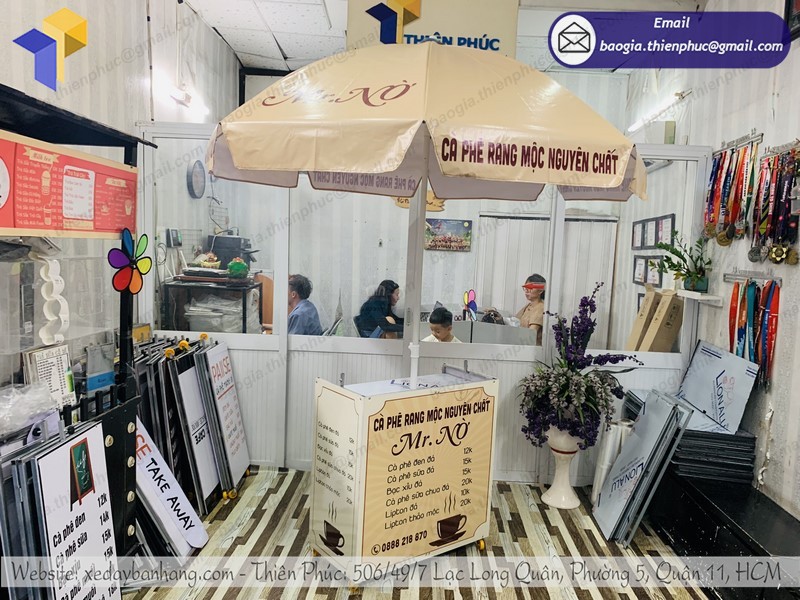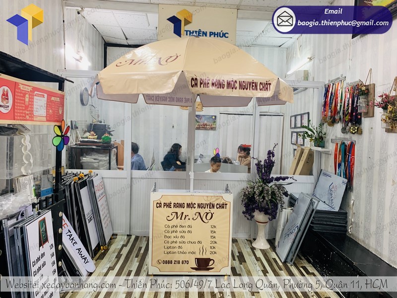 Còn nếu như bạn bị bí về ý tưởng, bạn có thể tham khảo những mẫu độc đáo tại Thiên Phúc. Chắc chắn, bạn sẽ được truyền cảm hứng từ những thứ bạn thấy hoặc nếu bạn chưa có ý tưởng hãy cùng đội ngũ thiết kế viên của Thiên Phúc lên bản phác thảo cho xe bán café xếp gọn, tạo điểm nhấn riêng cho bạn.