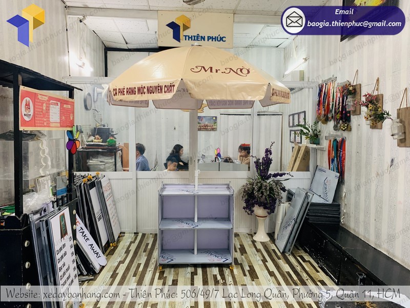 + Bàn bán hàng, nơi bạn đựng bếp, nồi cà phê, gia vị cần thiết để chế biến món ăn.