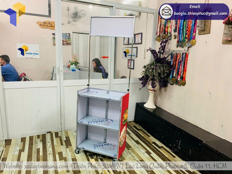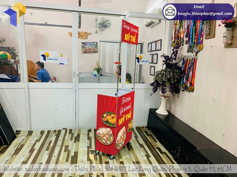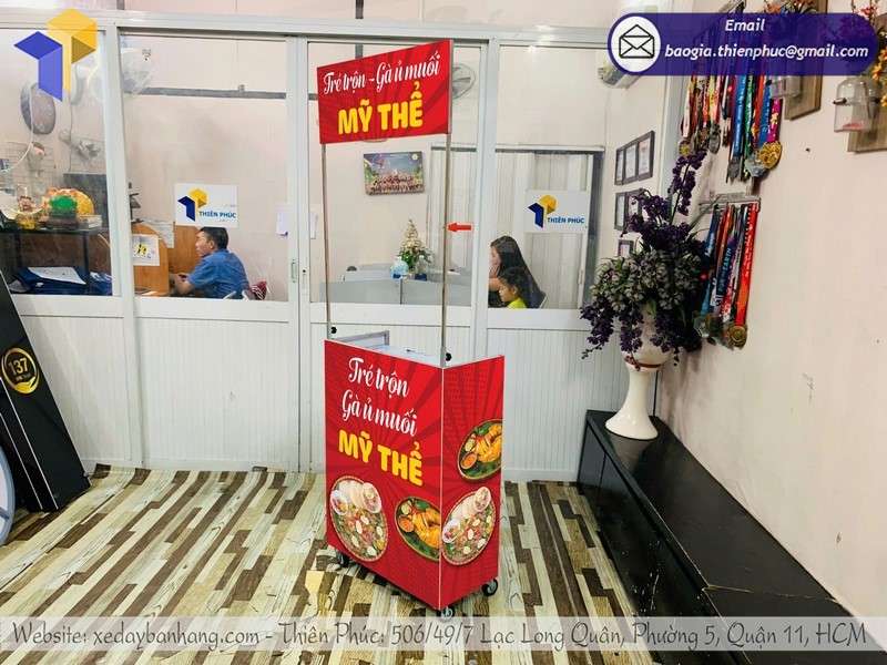 Thiên Phúc là nơi cung cấp các giải pháp thiết kế và thi công xe đẩy bán hàng. Đồng thời, cũng là thương hiệu xe đẩy bán hàng được nhiều người tin dùng và sử dụng. Ngoài ra, con nhận gia công theo nhu cầu và mong muốn của khách hàng. Chúng tôi luôn đặt tiêu chí “sự hài lòng của quý khách là niềm tự hào của chúng tôi”. Tại Thiên Phúc có vô vàn mẫu mã đa dạng, giá cả phù hợp; chất lượng và uy tín trải dài khắp 64 tỉnh thành với hệ thống vận chuyển xuyên suốt 3 miền với thời gian nhanh nhất.
