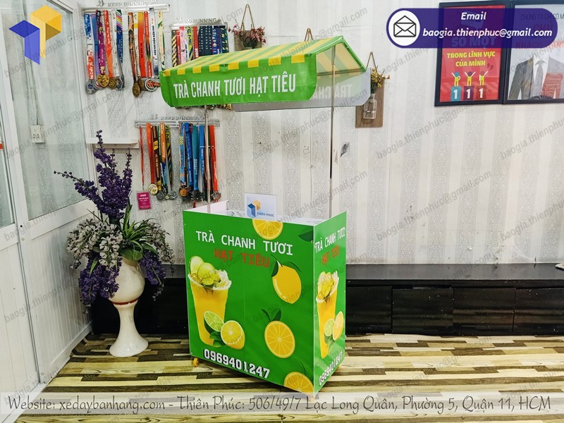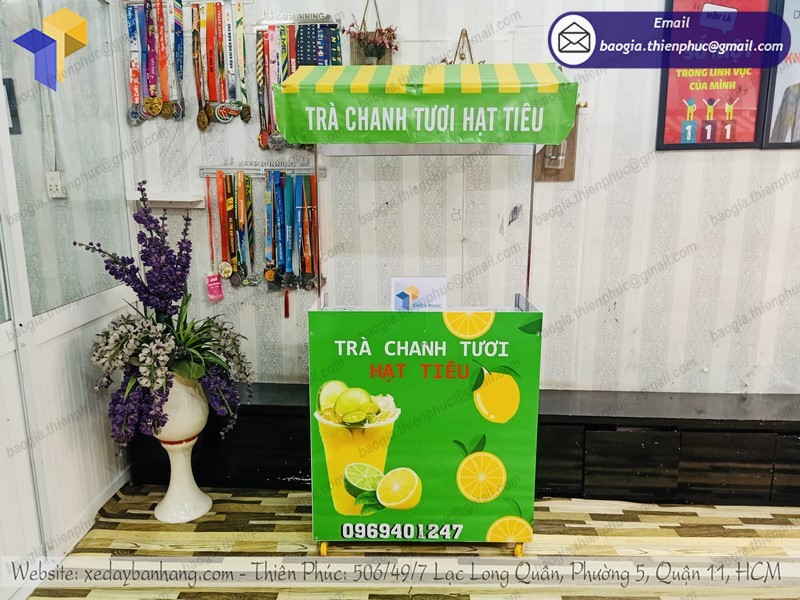 Công ty Thiên Phúc là một trong những địa chỉ chuyên sản xuất và phân phối tủ (xe) bán trà chanh đẹp, giá rẻ nhất mà bạn không thể bỏ qua. Với hơn 17 năm kinh nghiệm trong lĩnh vực gia công xe đẩy bán hàng, trong đó có tủ trà chanh. Các sản phẩm xe đẩy bán trà chanh lưu động gia công phân phối tại Thiên Phúc luôn được người tiêu dùng đánh giá cao: Chất lượng sản phẩm tốt – Mẫu mã đẹp độc lạ – Giá thành rẻ