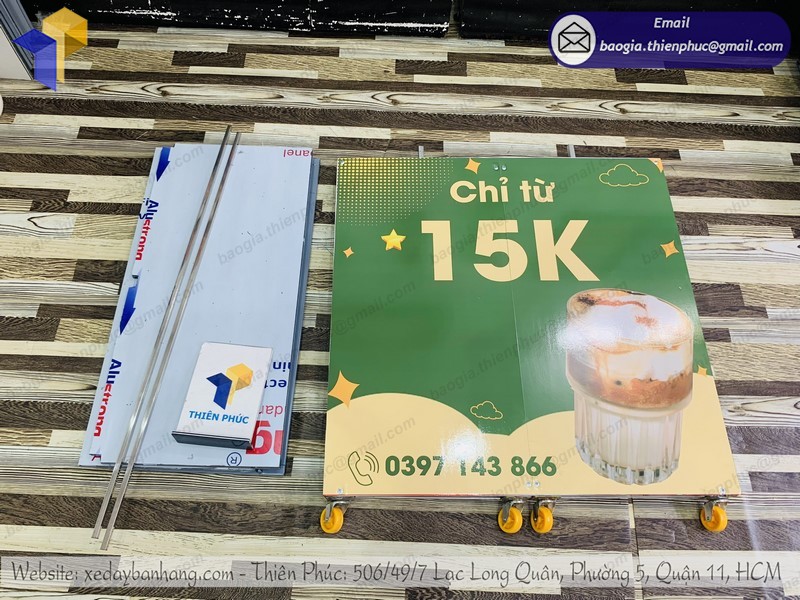 Như vậy bài viết ngày hôm nay thì chúng tôi đã giới thiệu đến các bạn mẫu sản phẩm xe bán café mini. Chất liệu siêu bền, được ưa chuộng bậc nhất trên thị trường hiện nay. Nếu bạn có nhu cầu mua cho mình 1 sản phẩm xe bán café gấp gọn. Hãy nhanh tay liên hệ với Thiên Phúc để nhận được báo giá tốt nhất nhé!