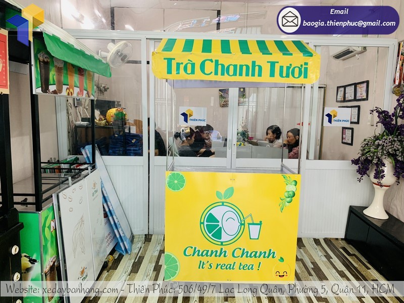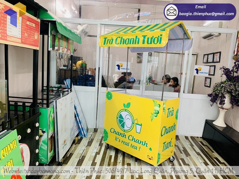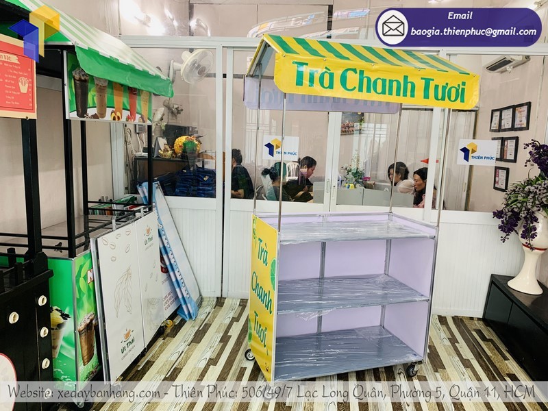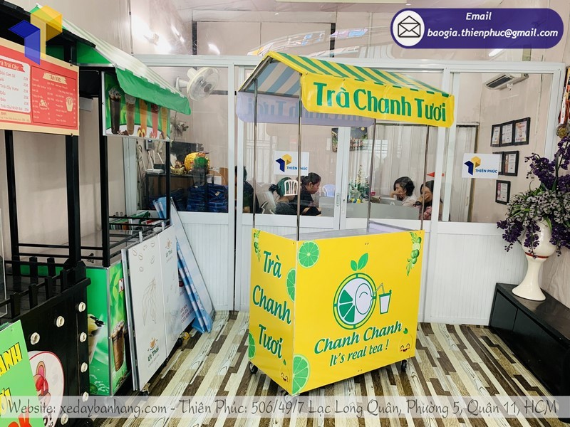 Quầy bán trà chanh hay còn gọi xe lăp ráp bán hàng lưu động đây là dòng xe có mô hình độc đáo được rất nhiều người tiêu dùng đánh bởi tính “Tiện lợi – Nhanh – Gọn Nhẹ“. Xe được thiết kế chuyên dùng cho đối tượng khách hàng kinh doanh các sản phẩm như: Xiên que, ăn vặt, cà phê, trà sữa, xôi, thức ăn nhanh, nước giải khát...