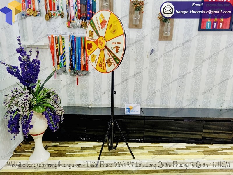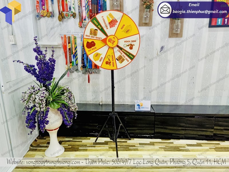 Nếu bạn có hứng thú với những chiếc vòng quay may mắn giá rẻ, đẹp, chất lượng, bền chắc, lại còn được thiết kế theo yêu cầu vậy thì bạn đã tìm đúng bài viết rồi đấy. Mình xin giới thiệu 1 xưởng vòng quay ở Sài Gòn với hơn 10 năm kinh nghiệm trong lĩnh vực gia công, thiết kế, sản xuất các loại vòng quay may mắn trúng thưởng chân đứng, chân xếp, để bàn, bảng trụ đó chính là xưởng Thiên Phúc.