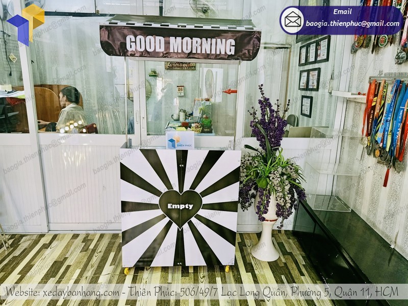 Mua xe đẩy bán cafe giá rẻ tại Thiên Phúc để được hỗ trợ thiết kế Decal độc quyền miễn phí. Chính sách bảo hành trọn đời chuyên nghiệp. Trợ giá hỗ trợ vận chuyển miễn phí tận nơi trên toàn quốc. Liên hệ số hotline 0903.897.980
