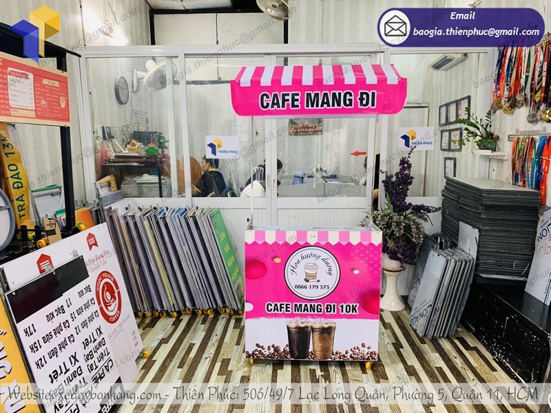 Các loại biển hiệu dành cho các chương trình khuyến mại nên làm thật to và nổi bật đặt cạnh xe bán cà phê lắp ráp để hấp dẫn khách hàng.