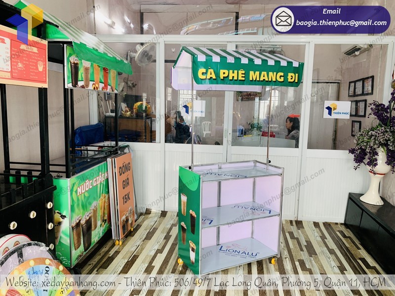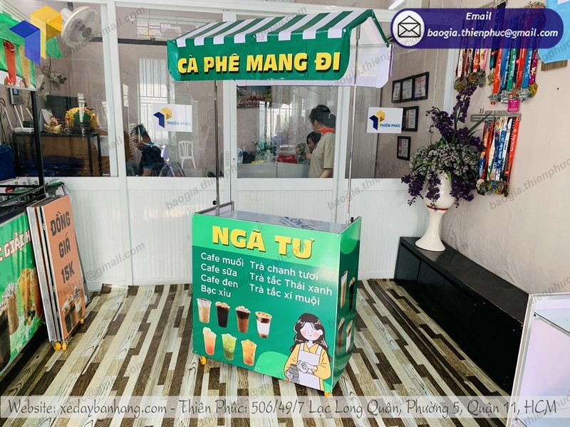 Là một đơn vị chuyên thiết kế và sản xuất các loại quầy, xe bán hàng lưu động đặc biệt là xe bán café lắp ráp, Thiên Phúc hiểu rõ những yêu cầu cũng như mục đích sử dụng của những chiếc xe bán cafe lưu động mà khách hàng đặt mua. Chính vì vậy, Thiên Phúc đã không ngừng sáng tạo, thiết kế rất nhiều mẫu xe bán cafe lưu động bắt mắt, tiện dụng, chất lượng với giá cả phải chăng.