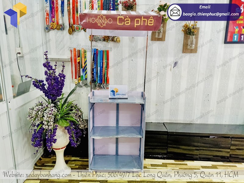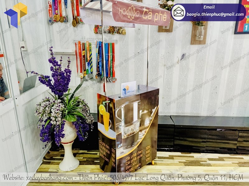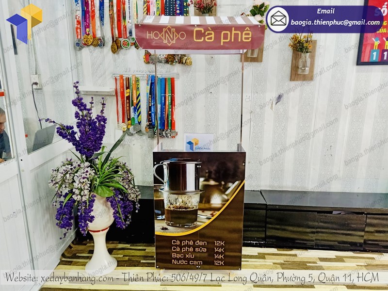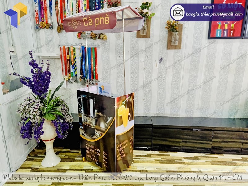 Xe bán hàng lắp ráp bằng sắt ngày nay cũng đang càng xuất hiện nhiều tại các trung tâm thương mại. Do nhu cầu mua sắm của khách hàng ngày một tăng cao, đây được xem là thời điểm quan trọng nhất để có thể đẩy tăng doanh số bán hàng. Nhờ đó, nhiều công ty thực hiện thành công các chiến dịch quảng bá cũng như tiếp thị. Và một trong những vật phẩm không thể thiếu là làm quầy bán cafe nguyên chất giá rẻ của Thiên Phúc chúng tôi, được khách hàng đánh giá như một dịch vụ tuyệt vời đến với khách hàng