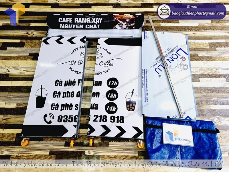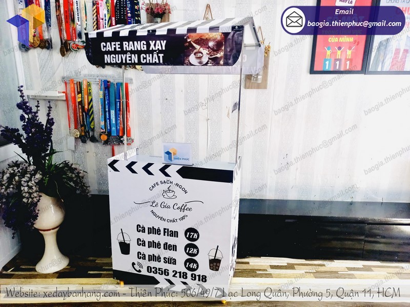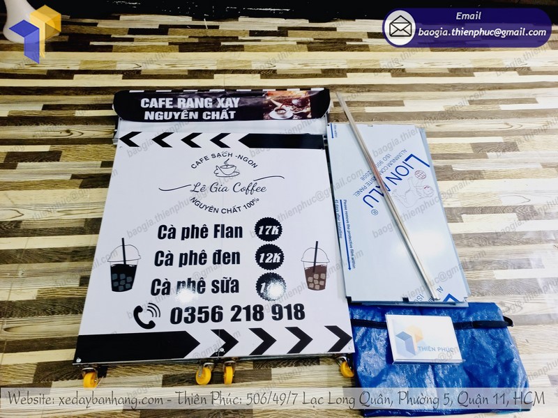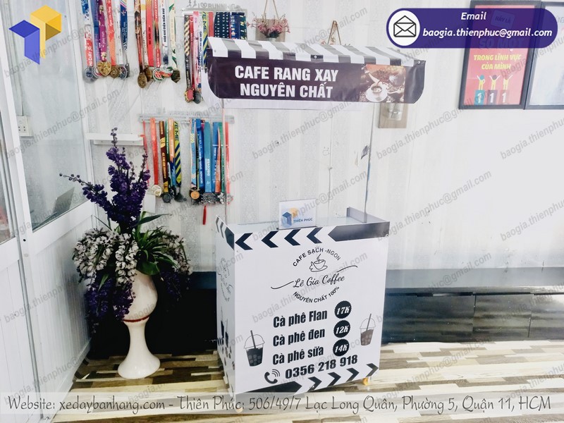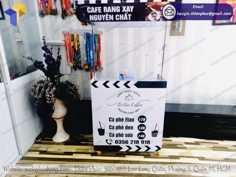 Một trong những địa chỉ bạn có thể hoàn toàn yên tâm khi mua sắm xe đẩy bán cafe đó chính là Thiên Phúc. Tại Thiên Phúc cung cấp xe bán cafe, trà sữa,.. di động bằng chất liệu inox 304 cao cấp với đề can nổi bật, đẹp mắt để thu hút khách hàng ghé quầy.