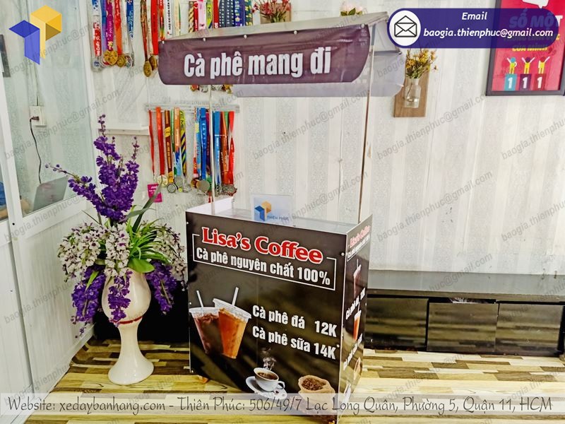 Hoặc bạn có thể trực tiếp đến văn phòng để cùng với đội ngũ thiết kế Thiên Phúc lên ý tưởng thiết kế sản phẩm mô hình xe cafe take away qua địa chỉ: 506/49/7 Lạc Long Quân, Phường 5, Quận 11, TP Hồ Chí Minh.