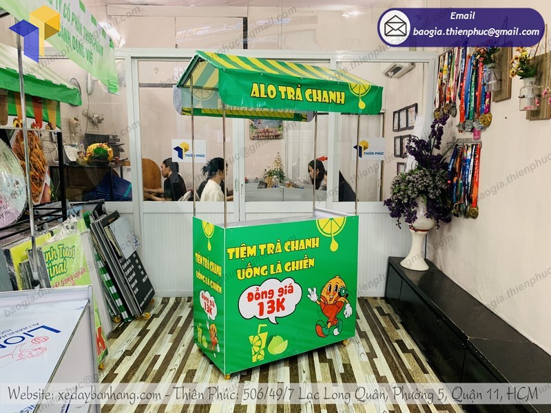 Công ty Thiên Phúc với kinh nghiệm nhiều năm, cung cấp hơn hàng ngàn sản phẩm đến tay người tiêu dùng, chúng tôi luôn đặt sự hài lòng của khách hàng lên hàng đầu. Thiên Phúc không ngừng sáng tạo, đổi mới sản phẩm để mang đến khách hàng những trải nghiệm mới lạ, độc đáo. Để đảm bảo quá trình kinh doanh của bạn được thuận lợi, bạn nên lựa chọn và đầu tư cho chiếc xe xếp bán trà chanh phù hợp với mình..