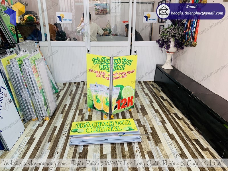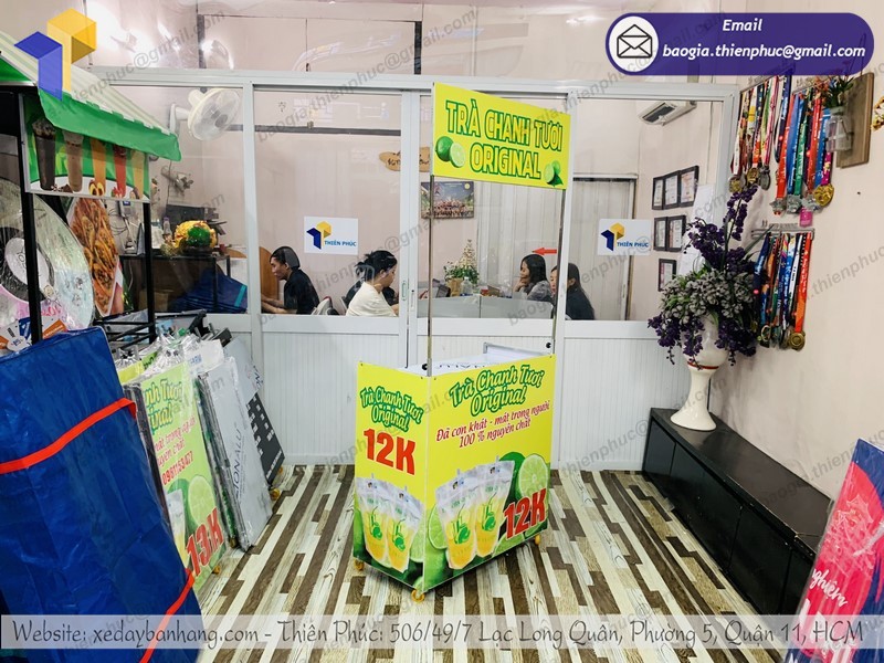 Công ty Thiên Phúc với kinh nghiệm nhiều năm, cung cấp hơn hàng ngàn sản phẩm đến tay người tiêu dùng, chúng tôi luôn đặt sự hài lòng của khách hàng lên hàng đầu. Thiên Phúc không ngừng sáng tạo, đổi mới sản phẩm để mang đến khách hàng những trải nghiệm mới lạ, độc đáo. Để đảm bảo quá trình kinh doanh của bạn được thuận lợi, bạn nên lựa chọn và đầu tư cho chiếc xe bán trà chanh xếp gọn phù hợp với mình..
