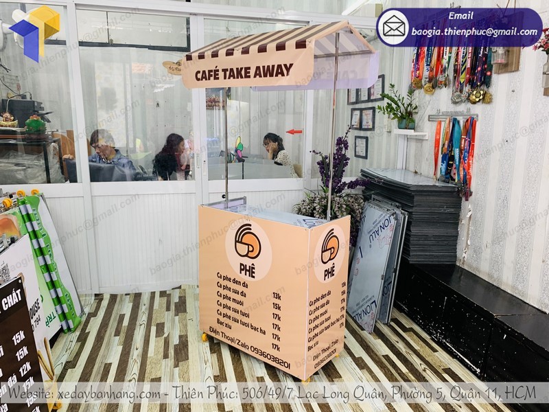Đặc điểm cấu tạo chi tiết của xe cà phê take away tại Thiên Phúc