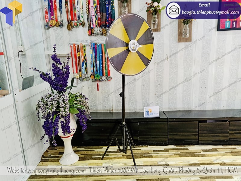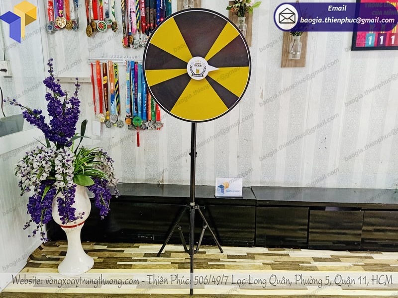 - Công ty Thiên Phúc là công ty chuyên in ấn và sản xuất quảng cáo, gia công chế tác các mẫu sản phẩm quảng cáo, vòng quay may mắn giá rẻ bền đẹp. Chúng tôi cung cấp số lượng lớn các sản phẩm vòng xoay trên thị trường toàn quốc, đặc biệt là ở TP. HCM. Thế mạnh của chúng tôi là các sản phẩm quảng cáo, xe đẩy bán hàng phục vụ khách hàng trên toàn quốc.