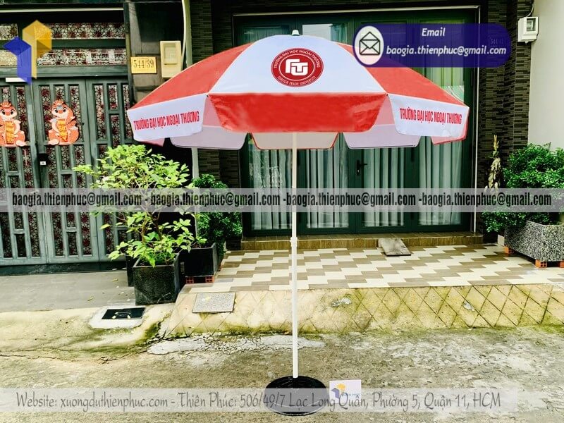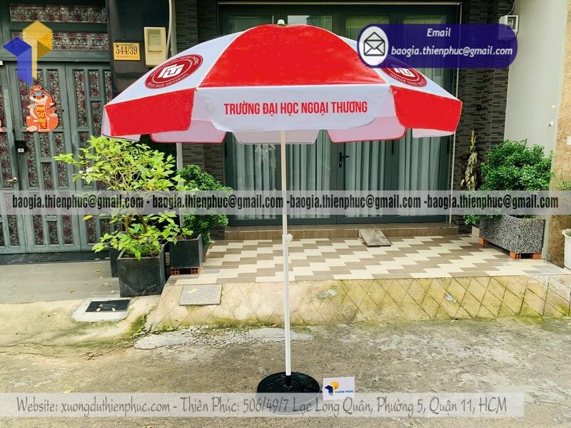 Tên sản phẩm: Mẫu dù lớn che nắng quảng cáo ngoài trời bán chạy với logo trường ĐẠI HỌC NGOẠI THƯƠNG