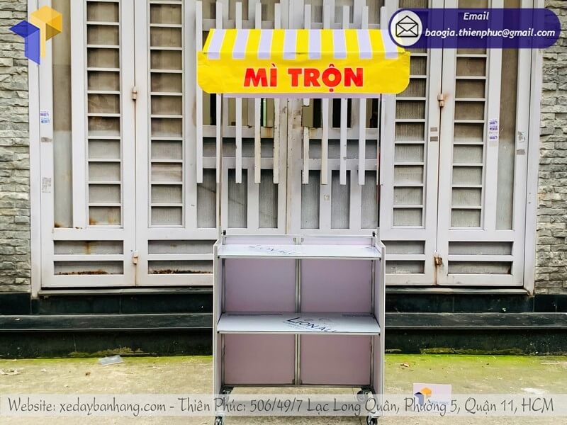 Mẫu kệ bán mì trộn gấp gọn có mái che trên vỉa hè – Xưởng Thiên Phúc chuyên sản xuất và gia công nhiều mẫu kệ gấp gọn lưu động với giá rẻ chỉ từ 700.000đ/cái trở lên, thiết kế logo miễn phí, không nơi đâu rẻ bằng.