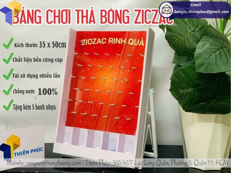 Tên sản phẩm: Mẫu kệ trò chơi thả banh ziczac may mắn để bàn sự kiện đẹp với logo ZICZAC RINH QUÀ