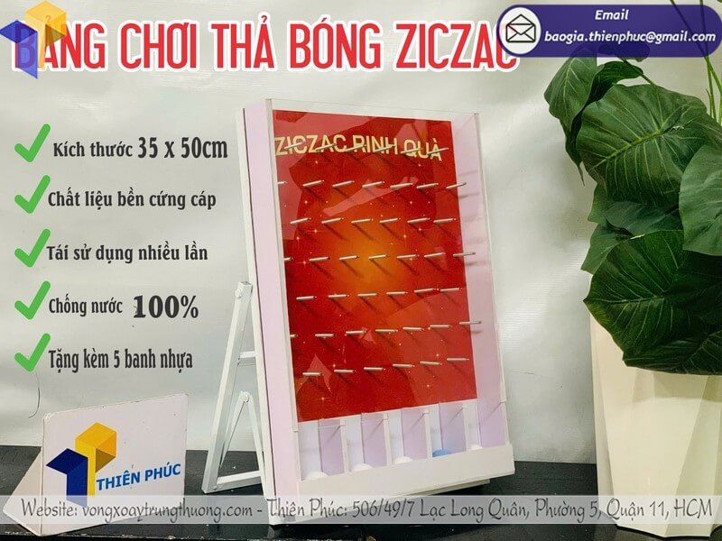 Mẫu kệ trò chơi thả banh ziczac may mắn để bàn sự kiện đẹp - Thiên Phúc là xưởng sản xuất chuyên gia công và thiết kế nhiều mẫu kệ thả banh ziczac theo yêu cầu với nhiều kích thước khác nhau, có giá dao động chỉ từ 750.000đ/cái cho kệ mini để bàn, giao hàng trên toàn quốc.