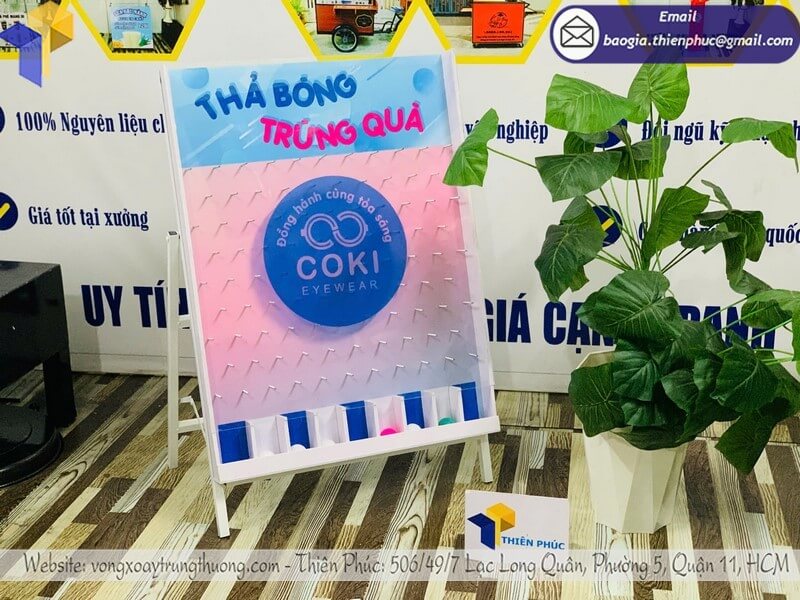 Tên sản phẩm: Mẫu khung thả bóng ziczac trúng thưởng giá rẻ với logo nhãn hàng COKI