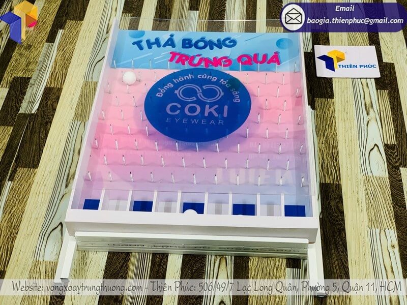 - Bảng thả bóng phía trên: nơi người chơi thả bóng vào, có thể in logo hoặc thông điệp thương hiệu để tăng độ nhận diện.