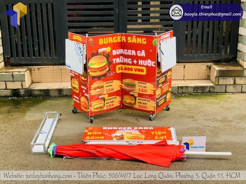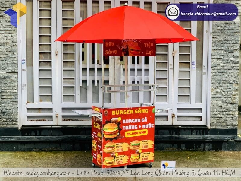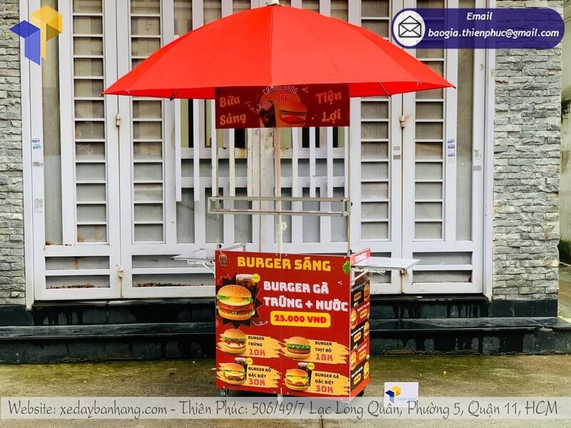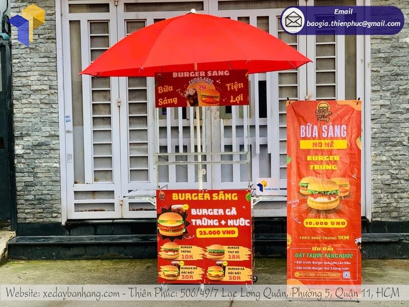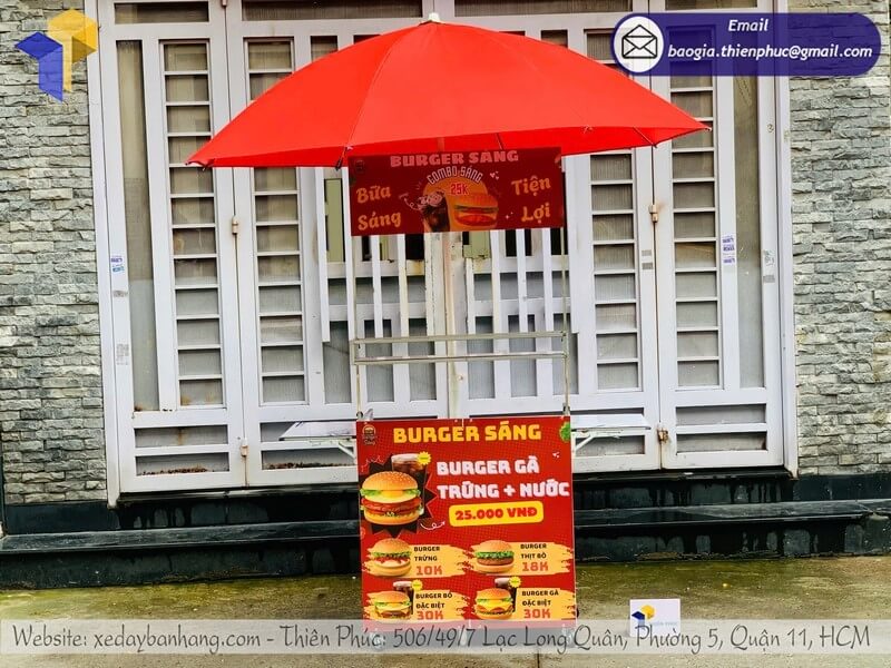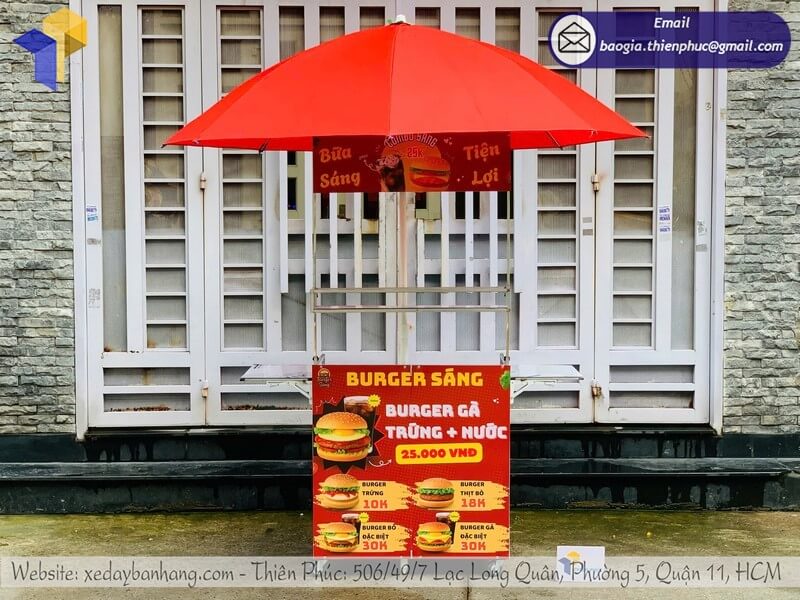 Tên sản phẩm: Mẫu quầy bán bánh mì gấp gọn có dù che với logo BURGER SÁNG