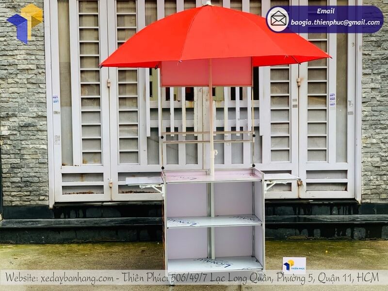 Mẫu quầy bán bánh mì gấp gọn có dù che - Thiên Phúc sản xuất, gia công nhiều mẫu quầy xe gấp gọn với giá rẻ tận xưởng, miễn phí thiết kế, nhận đặt hàng số lượng lớn.