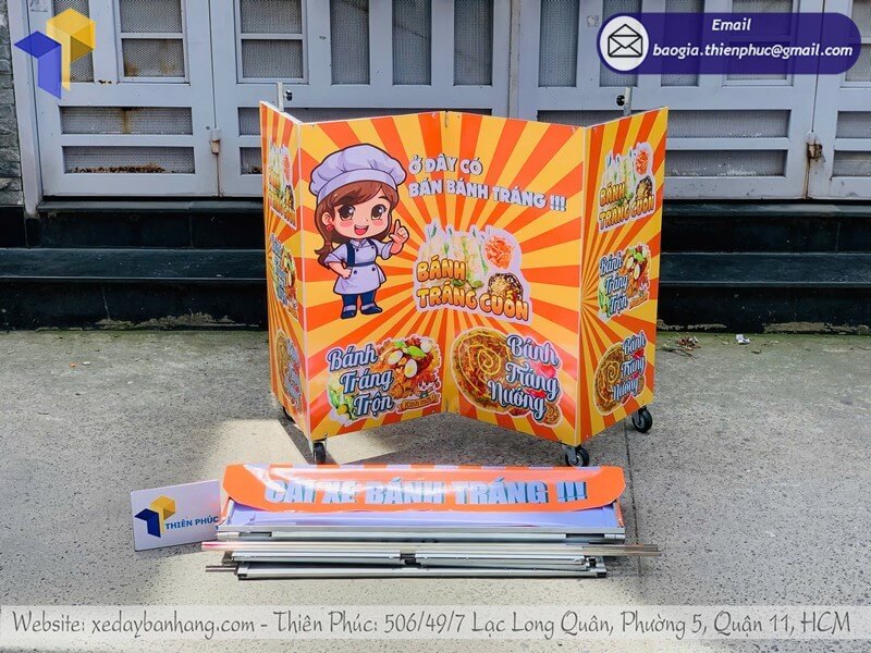 Mẫu quầy bán bánh tráng gấp gọn vỉa hè - Thiên Phúc chuyên sản xuất, thiết kế quầy bán hàng với nhiều mẫu mã, kích thước, cam kết giá rẻ tận xưởng