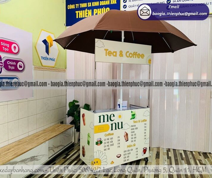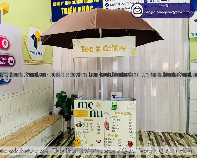 Từ khóa: quầy bán cafe take away, xe bán cafe di động, quầy cafe gắn dù che, xe đẩy cafe vỉa hè, mẫu quầy cafe đẹp 2026, quầy cafe lắp ráp, quầy bán hàng lưu động, quầy cafe giá rẻ hcm, xe cafe mang đi ngoài trời