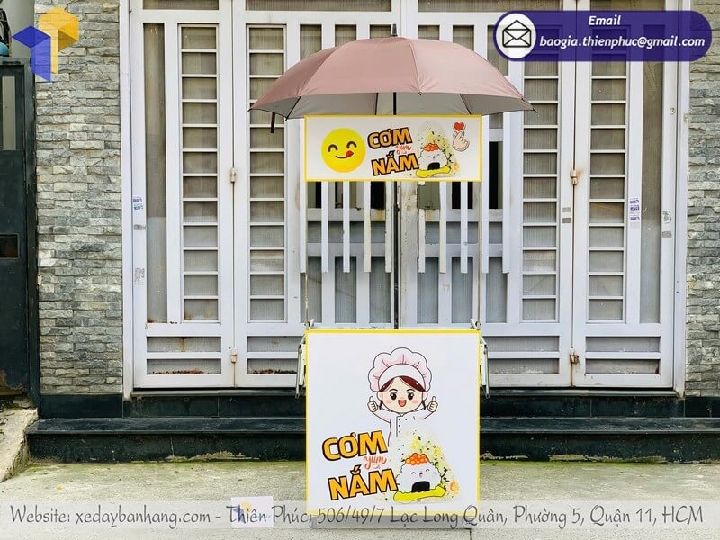 Tên sản phẩm: Mẫu quầy bán cơm nắm gấp gọn rẻ có ô dù che