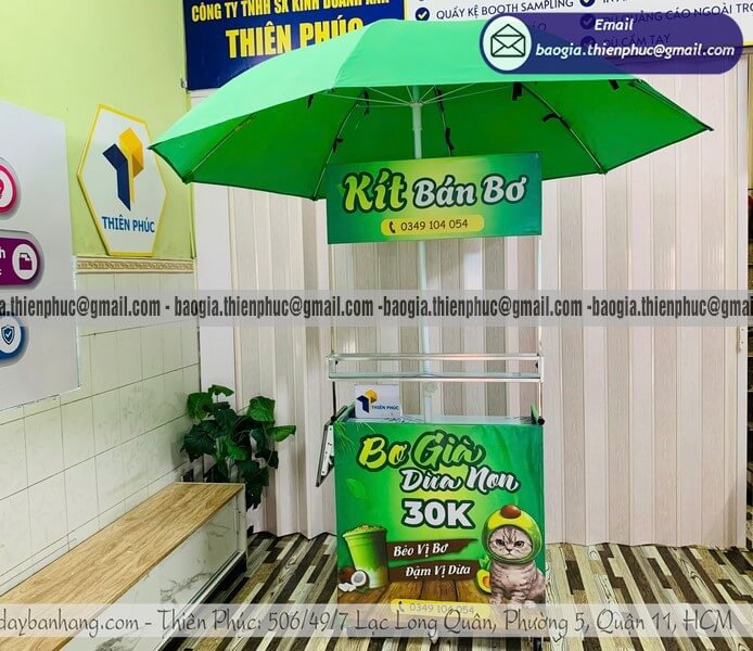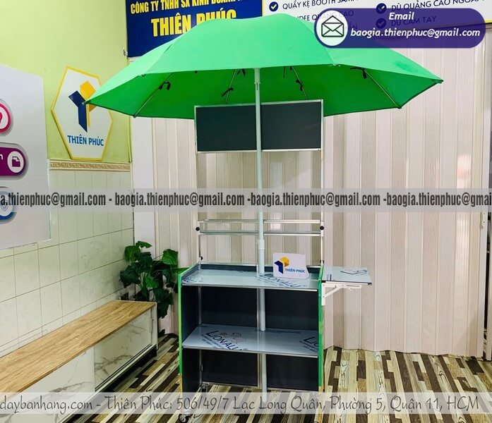 Một quầy bán hàng được thiết kế đẹp mắt, có dù che gọn gàng sẽ tạo ấn tượng tốt ngay từ cái nhìn đầu tiên, giúp khách hàng tin tưởng hơn khi mua sản phẩm.