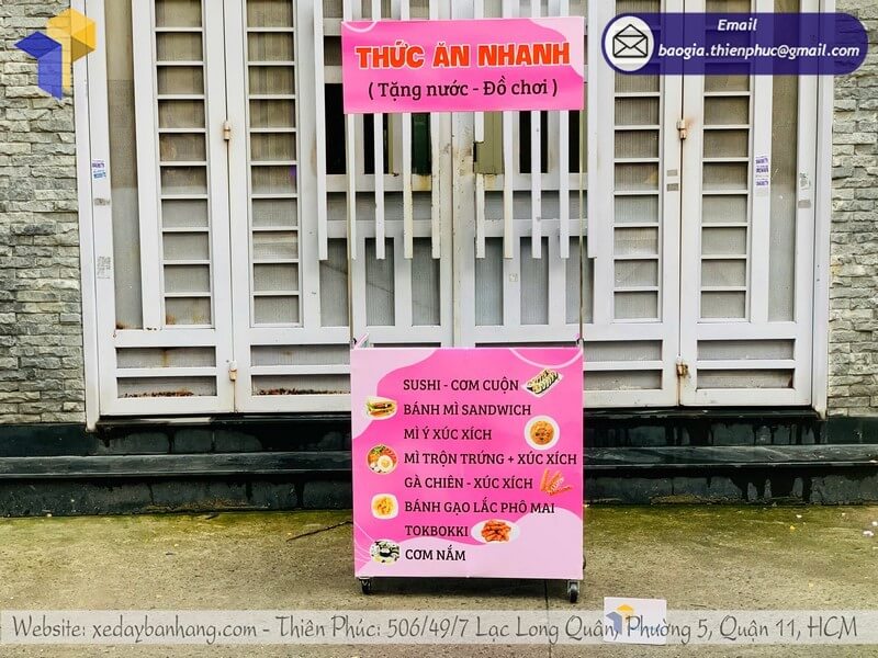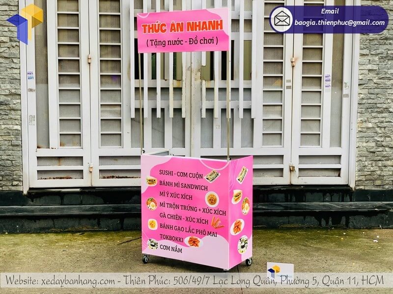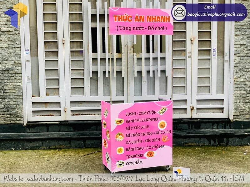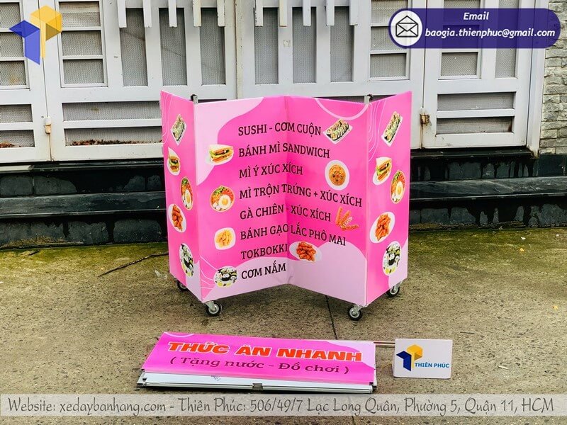 Mẫu quầy đồ ăn nhanh gấp gọn lề đường - Thiên Phúc gia công nhiều mẫu quầy gấp gọn khác nhau, đặt hàng nhanh số lượng lớn tính giá sỉ. Đặt trên 10 quầy giảm 50.000đ/quầy.
