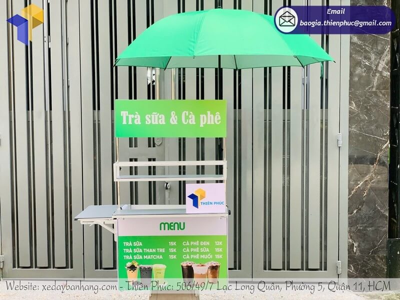 - Thùng bán trà sữa có dù che gắn xe máy: 1.000.000đ – 1.200.000đ/thùng trở lên