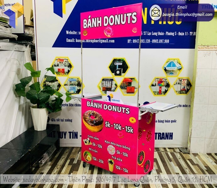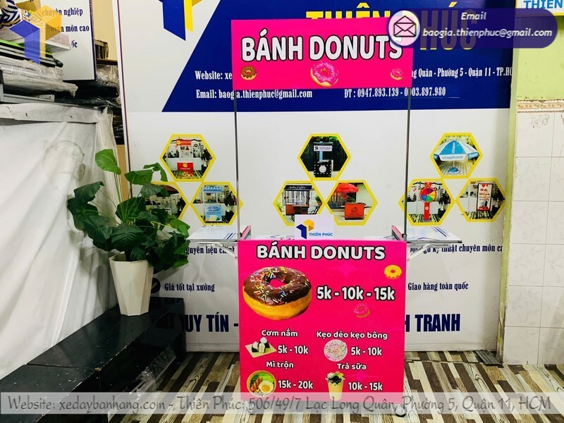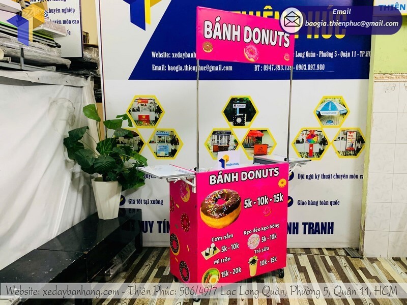 Tên sản phẩm: Mẫu tủ bán bánh dạo lưu động gấp gọn đường phố với sản phẩm BÁNH DONUTS
