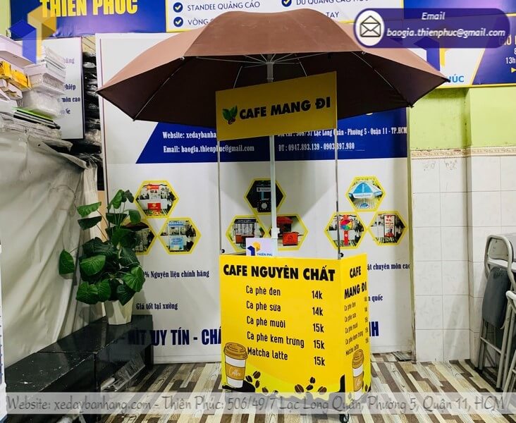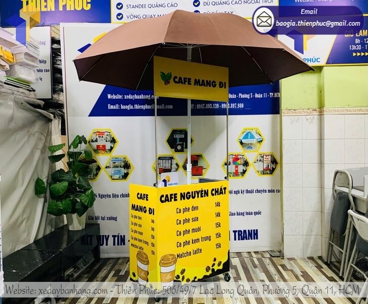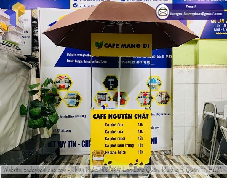 Báo giá Mẫu tủ bán cafe dạo lưu động gấp gọn có dù che – Giá tốt, Bán hiệu quả mọi nơi
