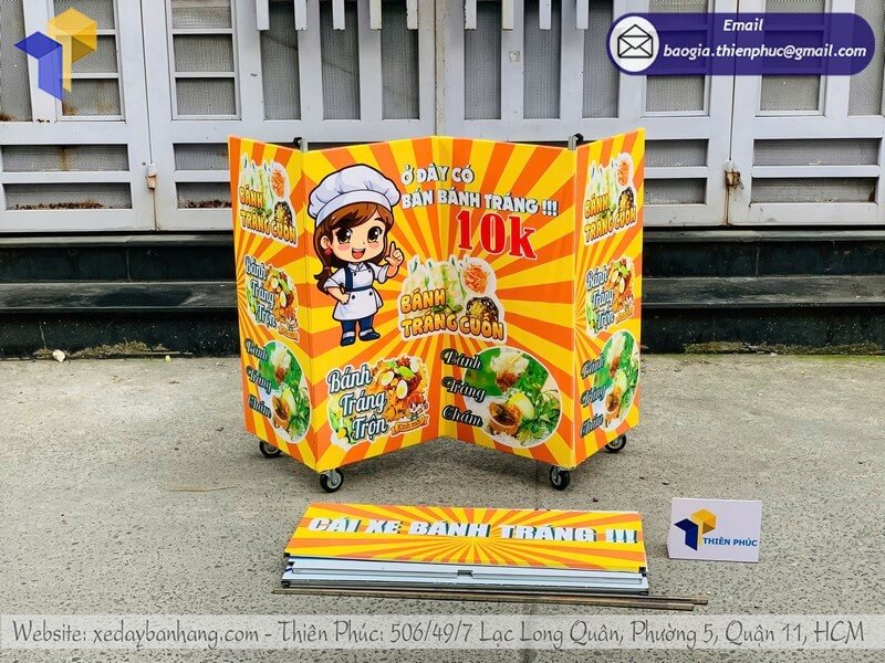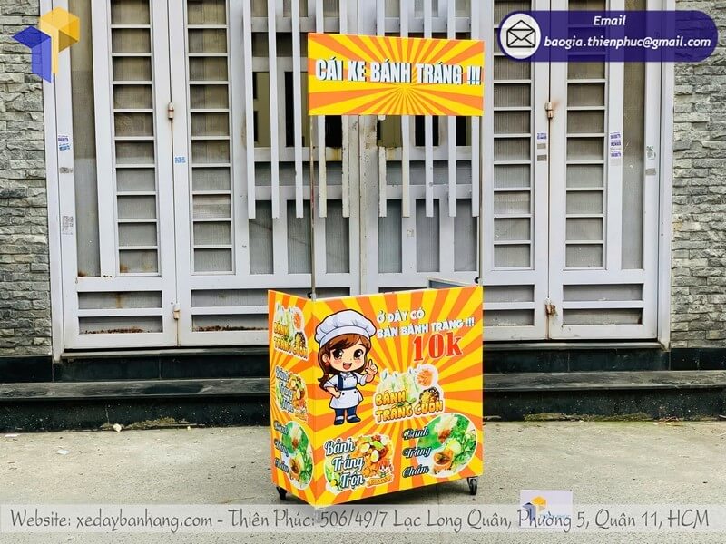 Tên sản phẩm: Mẫu tủ bán đồ ăn vặt dạo xếp gọn di động đẹp với nhãn hiệu logo CÁI XE BÁNH TRÁNG