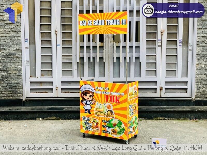 - Dễ di chuyển, phù hợp bán đồ ăn vặt nhẹ như bánh tráng, trái cây cắt sẵn.