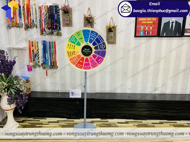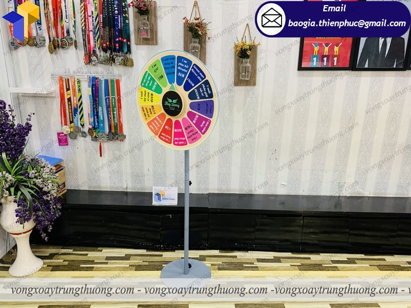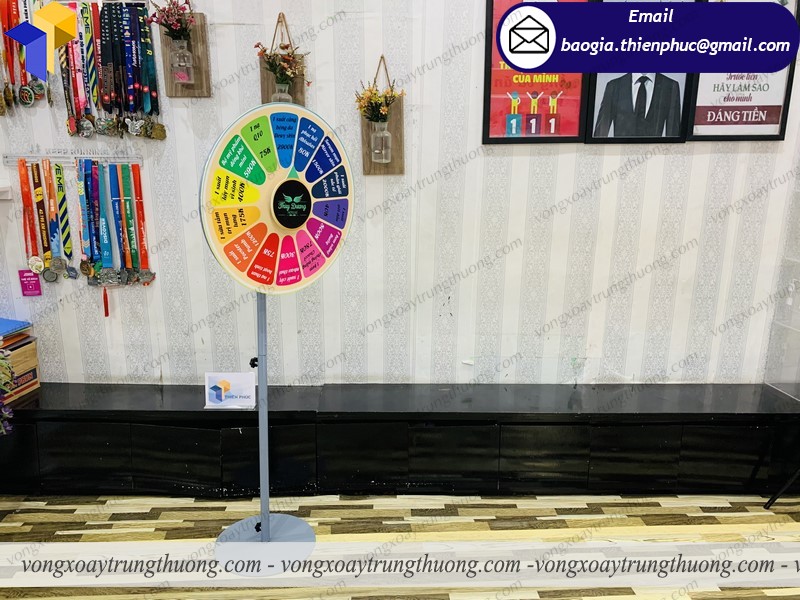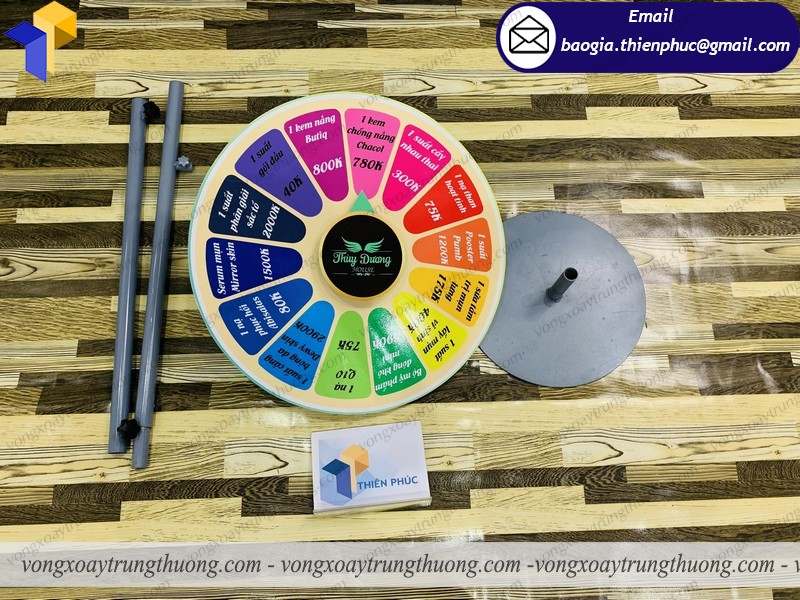 Có mặt trên thị trường trong ngành sản xuất các vật phẩm quảng cáo hơn 10 năm, Thiên Phúc đã v à đang được khách hàng trên cả nước tín nhiệm. Sản phẩm vòng quay sát phạt chân đứng , quay vòng thưởng đẹp, đa dạng mã hóa. Thiên Phúc nhận in ấn và thiết kế vòng xoay random sỉ và lẻ, sản xuất vòng quay số lượng lớn. Quý khách hàng tìm kiếm vòng sản xuất địa chỉ quay trúng thưởng may mắn rẻ đẹp, hãy đến ngay với Thiên Phúc. Chúng tôi hỗ trợ thiết kế và chỉnh sửa theo yêu cầu của bạn.