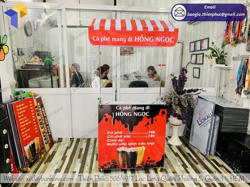 Còn nếu như vẫn chưa tìm được địa chỉ xe bán cà phê gấp gọn uy tín thì quý khách có thể ghé qua Thiên Phúc có địa chỉ tại số 506/49/7 Lạc Long Quận, Phương 5, Quận 11, TP. HCM để trực tiếp trải nghiệm xe lắp ráp bán cafe tại nơi đây.