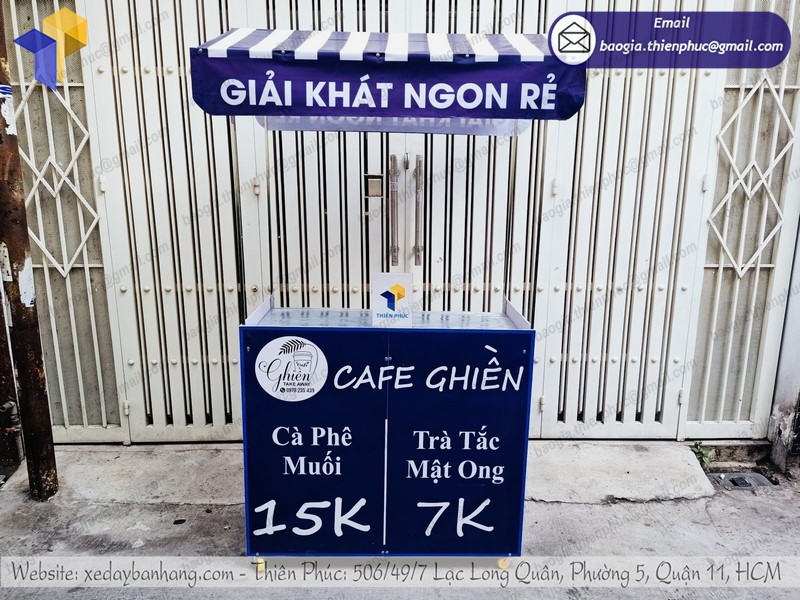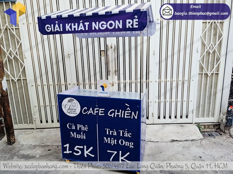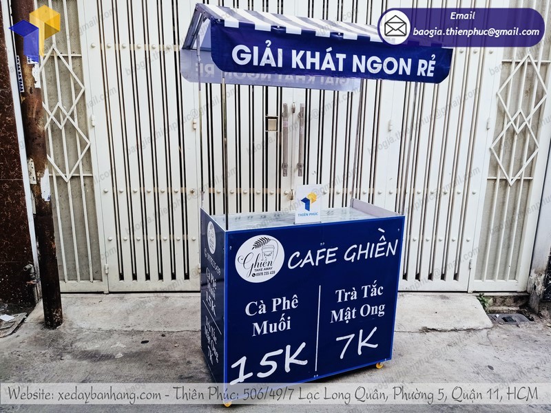 Công ty thiết kế và gia công Thiên Phúc là một trong những địa chỉ chuyên sản xuất và phân phối tủ (xe) bán cà phê tiện lợi, uy tín nhất định bạn không thể bỏ qua. Với hơn 10 năm kinh nghiệm trong lĩnh vực gia công xe đẩy bán hàng. Ở tất cả các lĩnh vực như xe bán trà sữa; xe bán sinh tố; xe bán trái cây; hoặc thậm chí các sản phẩm, cửa hàng thực phẩm, thức ăn và thức uống. Kể cả là các xe bán cà phê mang đi hay tủ cà phê lưu động. Các sản phẩm gia công phân phối tại Thiên Phúc luôn được người tiêu dùng đánh giá cao: